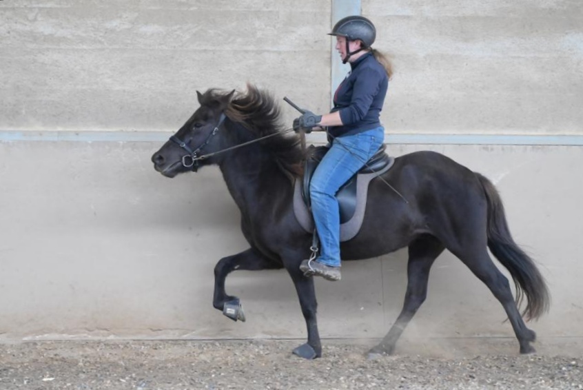 Freundliche unkomplizierte Stute mit viel Tölt und guten GGA, Alrun hat mittleres Temperament, viel Spaß bei der Arbeit und ist fein zu reiten.