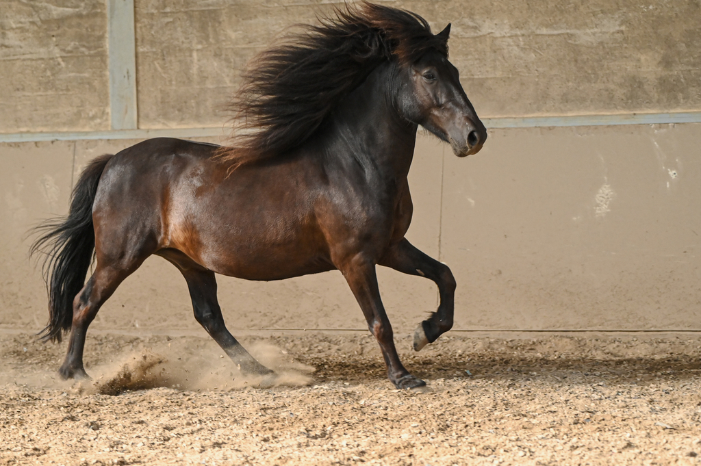 Tyr (Theo) ist ein sehr menschenbezogener, freundlicher Wallach mit stabilem Fundament und schicken Bewegungen.